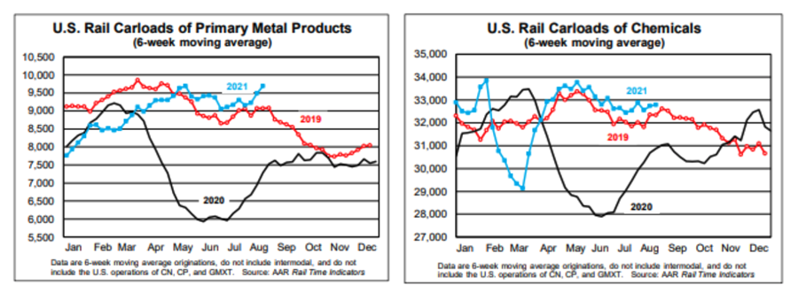 Chemicals were up 5.7% over August 2020 and are the most ever chemical carloads through August.