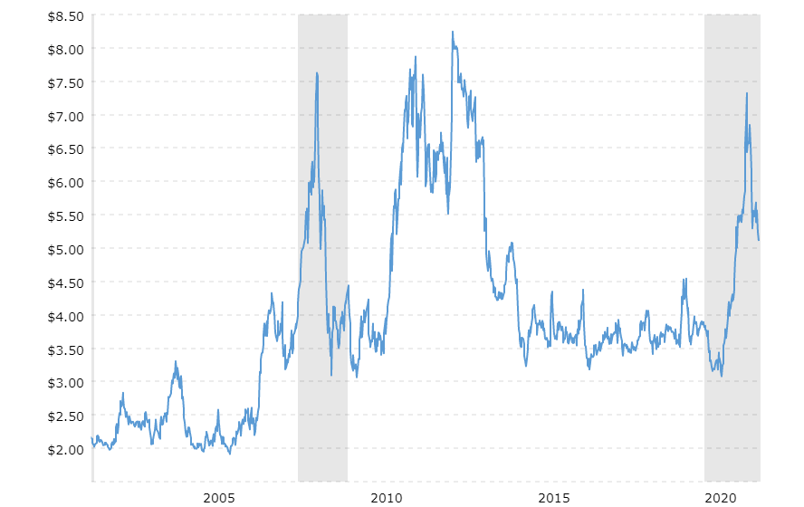 Grain, as measured by the AAR, is about 90% corn, wheat, and soybeans, with corn making up about the same as wheat and soybeans combined. Corn prices peaked on May 3, 2021, at $7.32 per bushel. Since then, they have moderated back to around $5.00 per bushel over the summer but still remain well above the average range of $3.00 - $4.50 that has been in place since 2014.