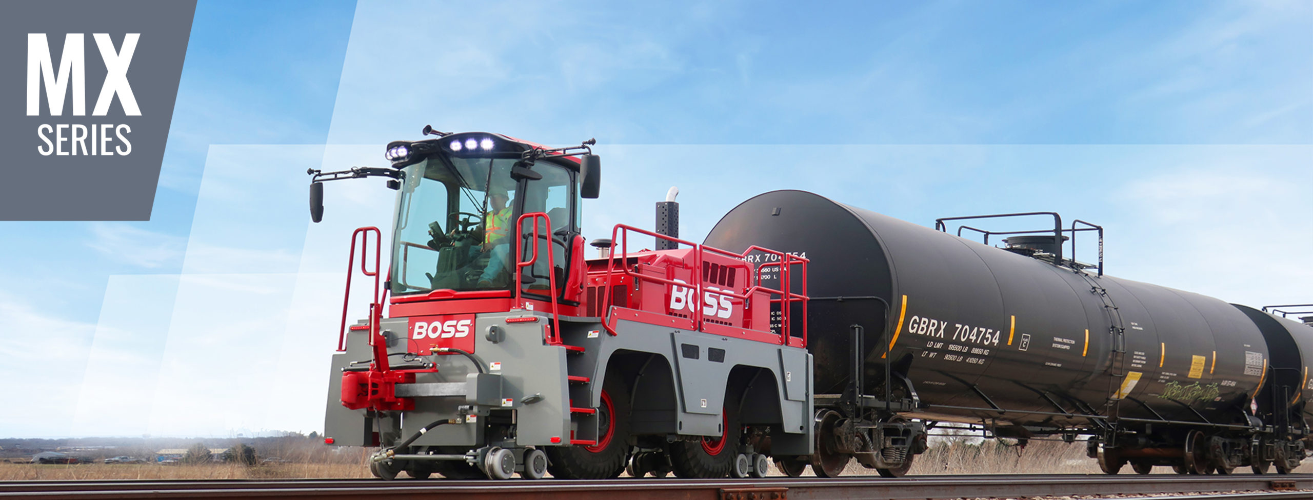 Explore the MX Series from BOSS Railcar Movers – the most reliable and robust railcar mover in the industry. Boasting reliable Cummins engines certified to EPA Tier 4 Final emission standards and a heavy-duty powershift transmission which is designed for precision, the MX Series will make short work of moving even the most loaded rails. With a high-capacity cooling system and robust planetary axles, this mover is designed to withstand harsh environments and keep all critical systems cool in the most extreme conditions. The independent pivoting rail gear and heavy-duty non-weight transfer rolling coupler system provide maximum over-the-rail stability.